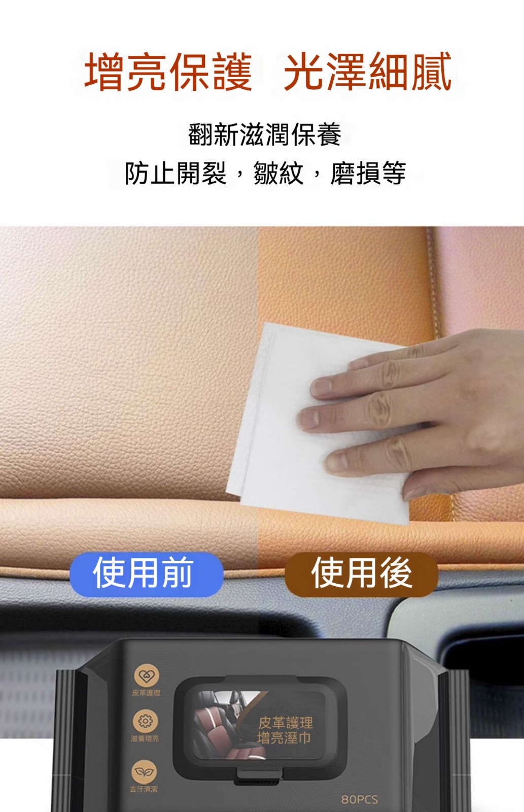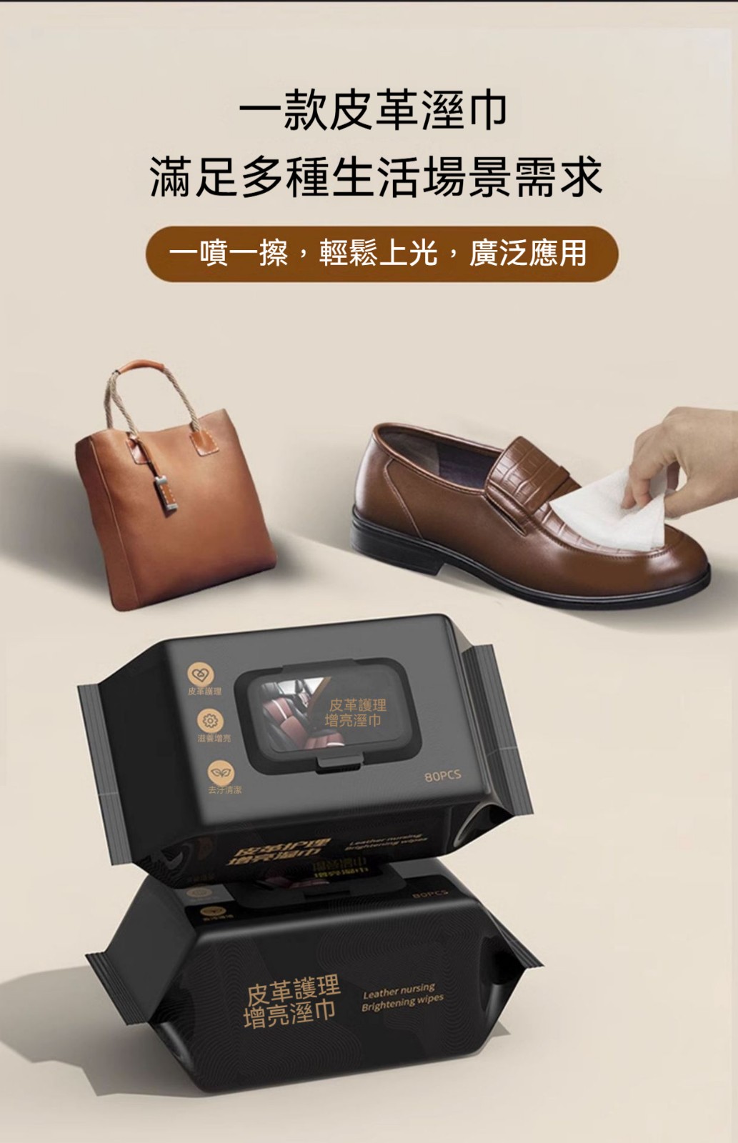 皮革護理增亮濕巾|80抽大容量✨ 一擦即亮!汽車座椅、皮包、皮鞋、皮衣都能用! 去污+滋養+增亮,3效合一超方便!
