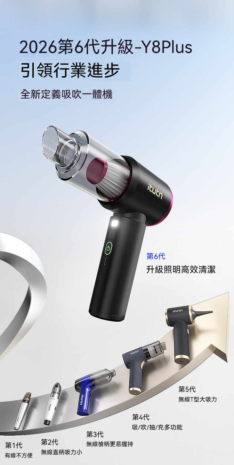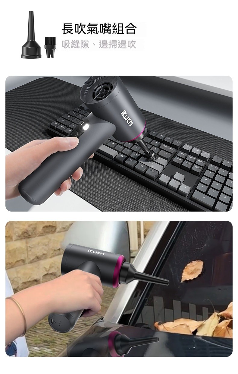✨ITUTN 5合1車載吸塵器|12000Pa暴風吸力⚡ 吸塵、吹氣、抽氣、充氣、照明一機搞定! 僅450g超輕量,女生單手也能輕鬆清潔!